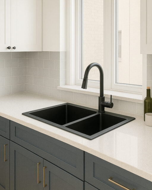 Fregadero Deluxe empotrable doble 82×45 cm Nano Negro: diseño moderno, resistente y funcional para cocinas elegantes.