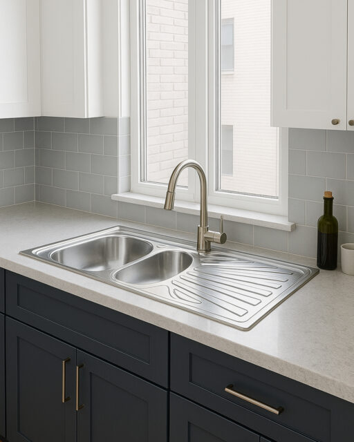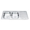 Fregadero sobrepuesto 120×50 cm de dos pozos con escurridor. Amplio, funcional y resistente, ideal para cocinas modernas que necesitan máxima capacidad y organización.