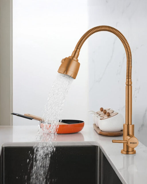 2. Diseño Francés Exquisito: Inspirados en la elegancia clásica y la precisión característica del diseño francés, los grifos BEL’EAU se integran perfectamente en cualquier estilo de cocina, añadiendo un toque de sofisticación a tu espacio.