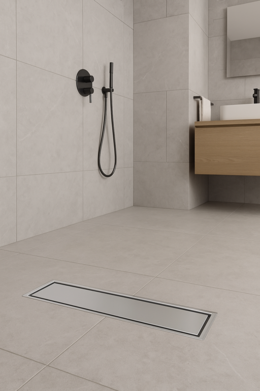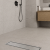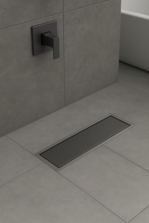 rejilla invisible de 2 pulgadas (30×10 cm) en acabado negro mate combina un diseño funcional con estética contemporánea. Su formato rectangular y alargado permite un mayor flujo de agua, ideal para duchas tipo walk-in o zonas amplias de desagüe.